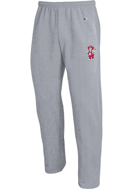 Mens Nebraska Cornhuskers Grey Champion Herbie Powerblend Open Bottom Sweatpants