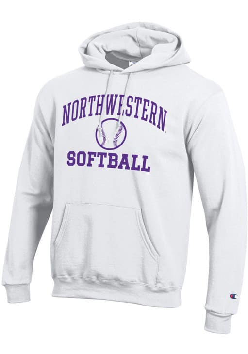 Mens Northwestern Wildcats White Champion Softball Icon Powerblend Hooded Sweatshirt