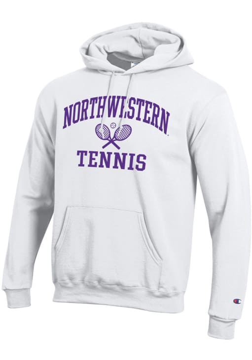 Mens Northwestern Wildcats White Champion Tennis Icon Powerblend Hooded Sweatshirt