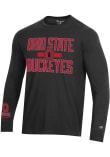Show your Ohio State Buckeyes spirit in this The Ohio State University Black T Shirt! This The Ohio State University Stadium Three Hit Long Sleeve T Shirt makes a great layer for cooler nights cheering on the Buckeyes. Featuring a screen print team logo on front chest, right sleeve and back, this Ohio State Buckeyes Long Sleeve Tee is an essential addition for every fan. Go Buckeyes!