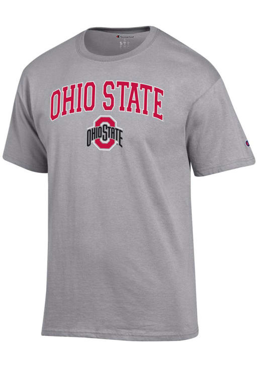 Display your team spirit with this remarkable Ohio State Buckeyes Champion Grey Arch Mascot Short Sleeve T Shirt! The The Ohio State University Short Sleeve Tee showcases a screen print of "Ohio State" over primary team logo beneath that truly sets it apart. Stand out from the crowd and proudly declare your allegiance to the Buckeyes with this exceptional Grey The Ohio State University T Shirt. Go Buckeyes!