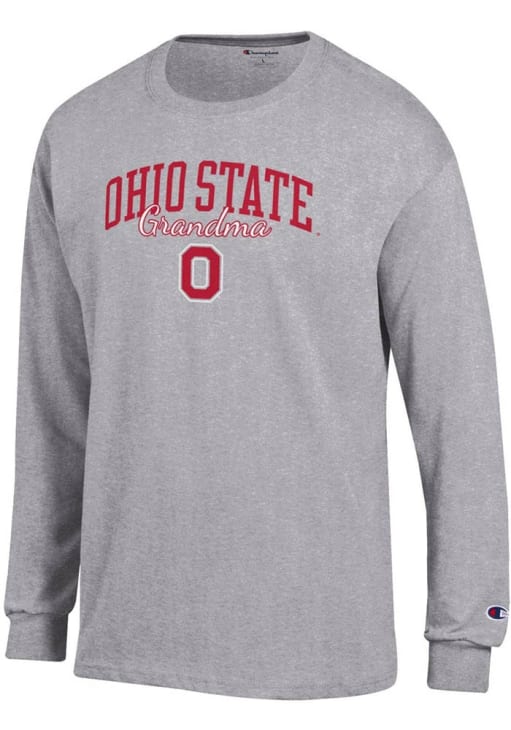 Show your Ohio State Buckeyes spirit in this The Ohio State University Grey T Shirt! This The Ohio State University Grandma Script Jersey Long Sleeve T Shirt makes a great layer for cooler nights cheering on the Buckeyes. Featuring a printed team graphic on front chest, this Ohio State Buckeyes Long Sleeve Tee is an essential addition for every fan. Go Buckeyes!