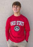 Show your Ohio State Buckeyes spirit in this The Ohio State University Red T Shirt! This The Ohio State University Seal Long Sleeve T Shirt makes a great layer for cooler nights cheering on the Buckeyes. Featuring a screen print of Ohio State arched over University seal on front chest, this Ohio State Buckeyes Long Sleeve Tee is an essential addition for every fan. Go Buckeyes!