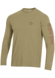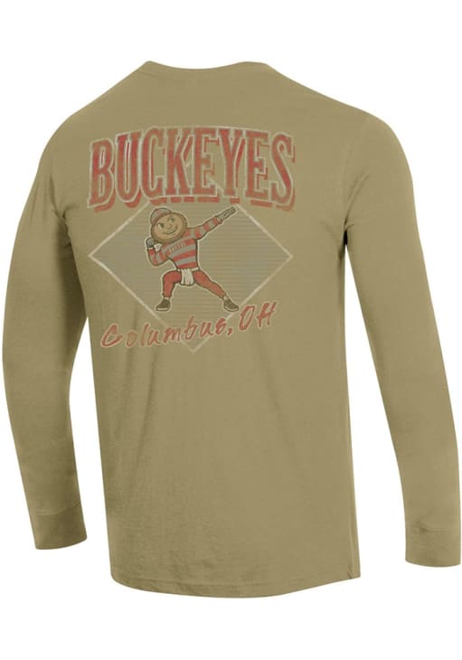 Show your Ohio State Buckeyes spirit in this The Ohio State University Tan T Shirt! This The Ohio State University Stadium Three Hits Long Sleeve T Shirt makes a great layer for cooler nights cheering on the Buckeyes. Featuring a screen print team graphic on front left chest, left sleeve and back, this Ohio State Buckeyes Long Sleeve Tee is an essential addition for every fan. Go Buckeyes!