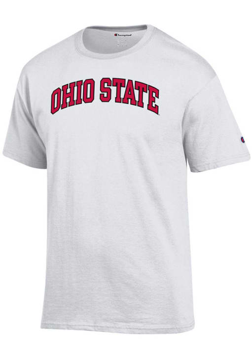 Ohio State Buckeyes White Champion Arch Name Graphic Design Short Sleeve T Shirt