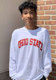 Show your Ohio State Buckeyes spirit in this The Ohio State University White T Shirt! This The Ohio State University Rally Loud Long Sleeve T Shirt makes a great layer for cooler nights cheering on the Buckeyes. Featuring a screen print Ohio State wordmark on front chest with primary logo on back, this Ohio State Buckeyes Long Sleeve Tee is an essential addition for every fan. Go Buckeyes!