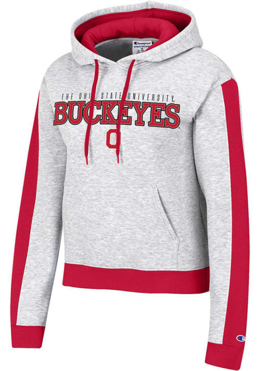 Embrace your Buckeyes pride and showcase your team spirit with confidence in this Ohio State Buckeyes Long Sleeve Hoodie! Stay warm and stylish with the The Ohio State University Womens Grey Sleeve Stripe Hooded Sweatshirt. Designed with screen print team name and logo on center chest, this Buckeyes Long Sleeve Hoodie is a must-have for dedicated fans.