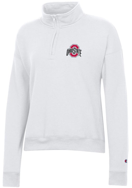 Embrace the warmth and showcase your Buckeyes pride with our Ohio State Buckeyes Long Sleeve Qtr Zip. This Womens White Powerblend Long Sleeve Pullover offers a screenprint team name on left chest for the perfect combination of comfort and style. Elevate your everyday look with this must-have Ohio State Buckeyes Long Sleeve Qtr Zip.