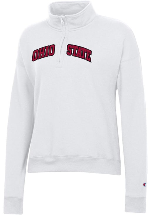 Embrace the warmth and showcase your Buckeyes pride with our Ohio State Buckeyes Long Sleeve Qtr Zip. This Womens White Twill Long Sleeve Pullover offers a applique team name on center chest for the perfect combination of comfort and style. Elevate your everyday look with this must-have Ohio State Buckeyes Long Sleeve Qtr Zip.
