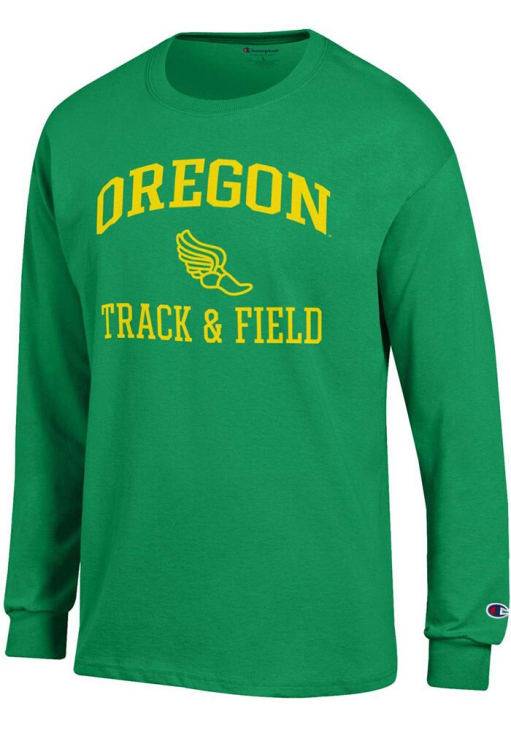 Show your Oregon Ducks spirit in this Oregon Green T Shirt! This Oregon Track & Field Icon Jersey Long Sleeve T Shirt makes a great layer for cooler nights cheering on the Ducks. Featuring a printed team graphic on front chest, this Oregon Ducks Long Sleeve Tee is an essential addition for every fan. Go Ducks!