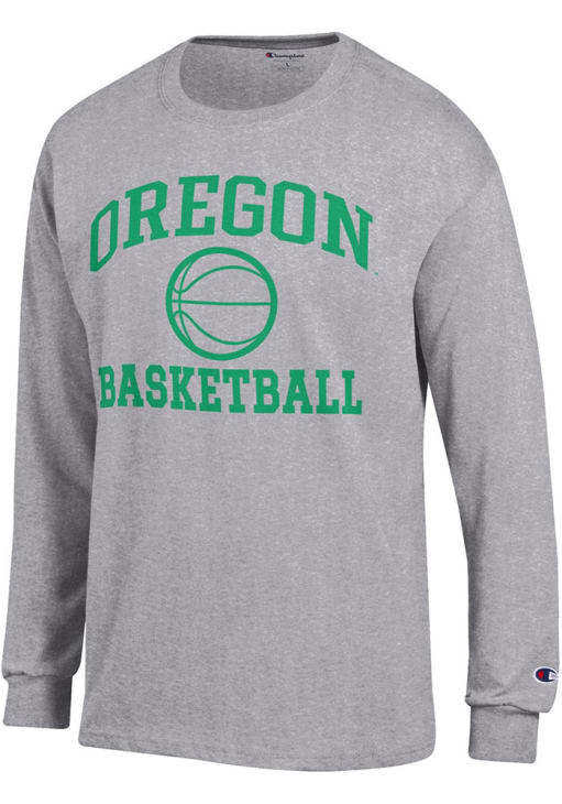 Show your Oregon Ducks spirit in this Oregon Grey T Shirt! This Oregon Basketball Jersey Long Sleeve T Shirt makes a great layer for cooler nights cheering on the Ducks. Featuring a printed team graphic on front chest, this Oregon Ducks Long Sleeve Tee is an essential addition for every fan. Go Ducks!