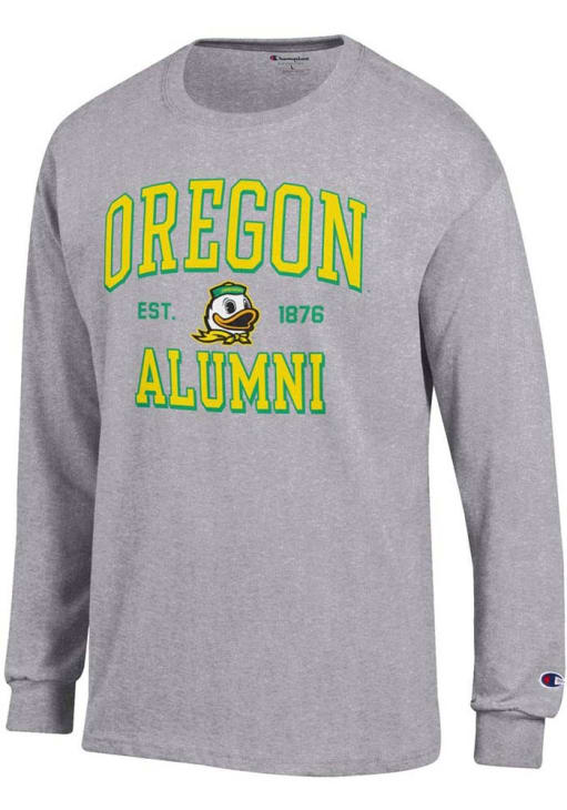 Show your Oregon Ducks spirit in this Oregon Grey T Shirt! This Oregon Est Alumni Jersey Long Sleeve T Shirt makes a great layer for cooler nights cheering on the Ducks. Featuring a printed team graphic on front chest, this Oregon Ducks Long Sleeve Tee is an essential addition for every fan. Go Ducks!