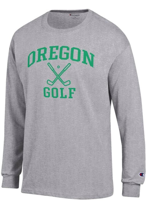 Show your Oregon Ducks spirit in this Oregon Grey T Shirt! This Oregon Golf Icon Jersey Long Sleeve T Shirt makes a great layer for cooler nights cheering on the Ducks. Featuring a printed team graphic on front chest, this Oregon Ducks Long Sleeve Tee is an essential addition for every fan. Go Ducks!