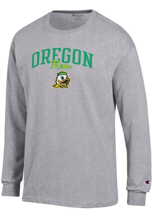 Show your Oregon Ducks spirit in this Oregon Grey T Shirt! This Oregon Mom Script Jersey Long Sleeve T Shirt makes a great layer for cooler nights cheering on the Ducks. Featuring a printed team graphic on front chest, this Oregon Ducks Long Sleeve Tee is an essential addition for every fan. Go Ducks!