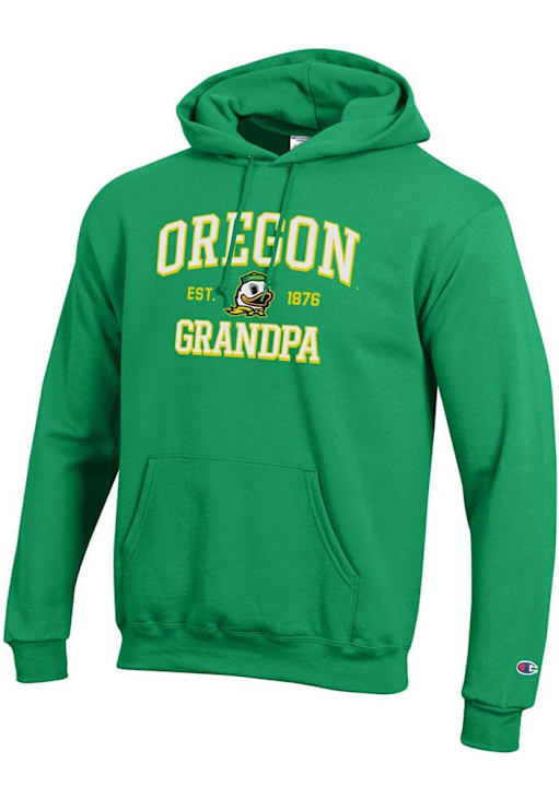 Mens Oregon Ducks Green Champion Est. Date Grandpa Powerblend Hooded Sweatshirt