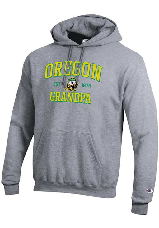 Mens Oregon Ducks Grey Champion Est. Date Grandpa Powerblend Hooded Sweatshirt