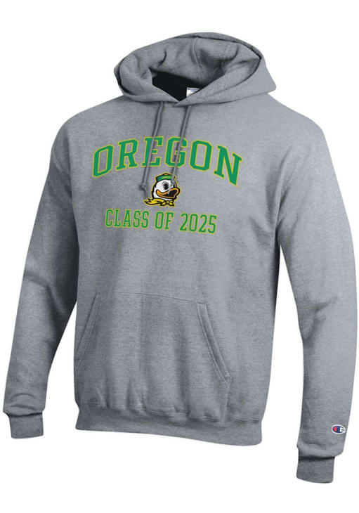 Mens Oregon Ducks Grey Champion Font Class of 2025 Powerblend Hooded Sweatshirt