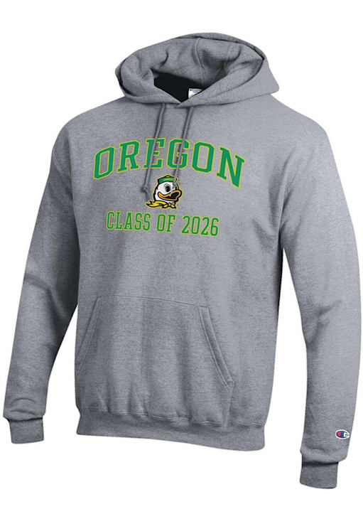 Mens Oregon Ducks Grey Champion Font Class of 2026 Powerblend Hooded Sweatshirt
