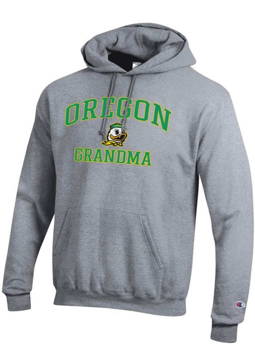 Mens Oregon Ducks Grey Champion Grandma Powerblend Hooded Sweatshirt