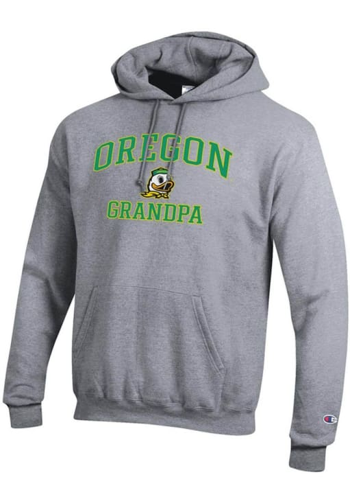 Mens Oregon Ducks Grey Champion Grandpa Powerblend Hooded Sweatshirt