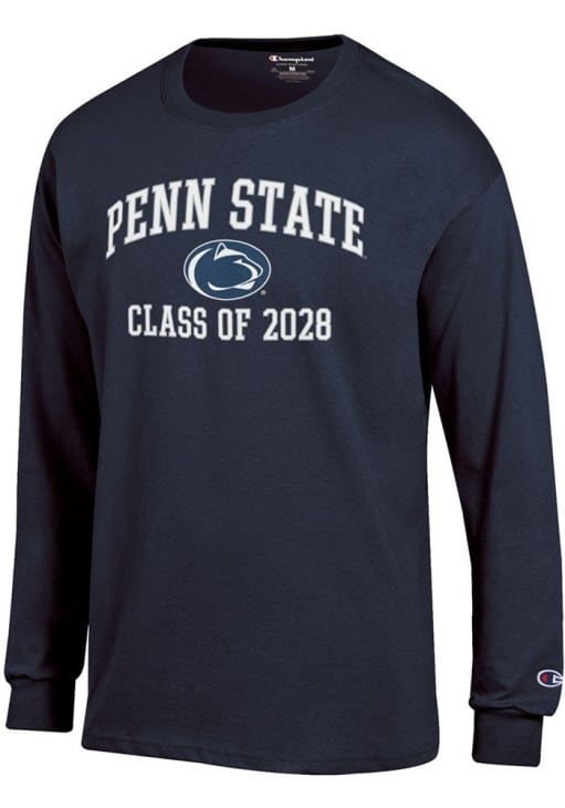 Show your Penn State Nittany Lions spirit in this Penn State Navy Blue T Shirt! This Penn State Font Class of 2028 Jersey Long Sleeve T Shirt makes a great layer for cooler nights cheering on the Nittany Lions. Featuring a printed team graphic on front chest, this Penn State Nittany Lions Long Sleeve Tee is an essential addition for every fan. Go Lions!