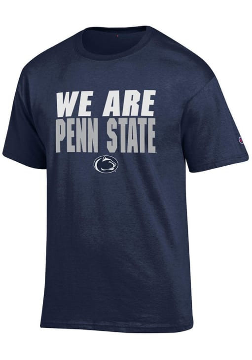 Display your team spirit with this remarkable Penn State Nittany Lions Champion Navy Blue Slogan Short Sleeve T Shirt! The Penn State Short Sleeve Tee showcases a screen printed wordmark "We are Penn State" with logo that truly sets it apart. Stand out from the crowd and proudly declare your allegiance to the Nittany Lions with this exceptional Navy Blue Penn State T Shirt. Go Lions!