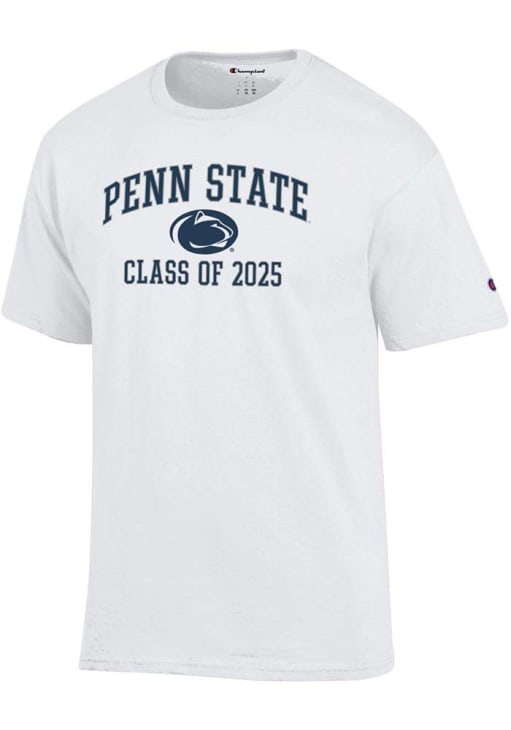 Display your team spirit with this remarkable Penn State Nittany Lions Champion White Class of 2025 Text Jersey Short Sleeve T Shirt! The Penn State Short Sleeve Tee showcases a printed team graphic that truly sets it apart. Stand out from the crowd and proudly declare your allegiance to the Nittany Lions with this exceptional White Penn State T Shirt. Go Lions!