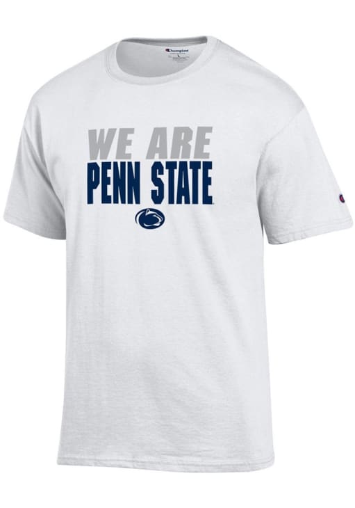 Display your team spirit with this remarkable Penn State Nittany Lions Champion White Slogan/Tonal Logo Short Sleeve T Shirt! The Penn State Short Sleeve Tee showcases a screen printed wordmark "We are Penn State" with logo that truly sets it apart. Stand out from the crowd and proudly declare your allegiance to the Nittany Lions with this exceptional White Penn State T Shirt. Go Lions!