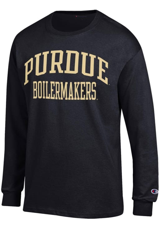 Show your Purdue Boilermakers spirit in this Purdue Black T Shirt! This Purdue Jersey Long Sleeve T Shirt makes a great layer for cooler nights cheering on the Boilermakers. Featuring a printed team graphic on front chest, this Purdue Boilermakers Long Sleeve Tee is an essential addition for every fan. Hail Purdue!