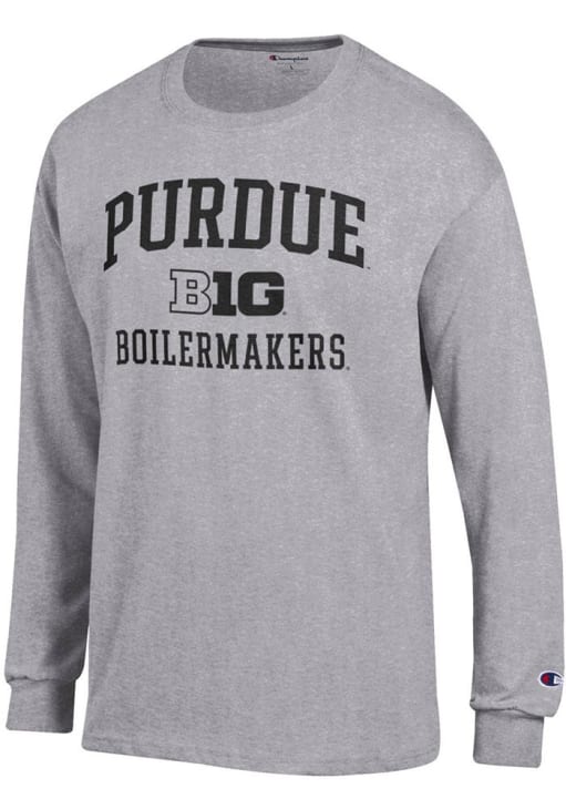 Show your Purdue Boilermakers spirit in this Purdue Grey T Shirt! This Purdue Big Ten Jersey Long Sleeve T Shirt makes a great layer for cooler nights cheering on the Boilermakers. Featuring a printed team graphic on front chest, this Purdue Boilermakers Long Sleeve Tee is an essential addition for every fan. Hail Purdue!