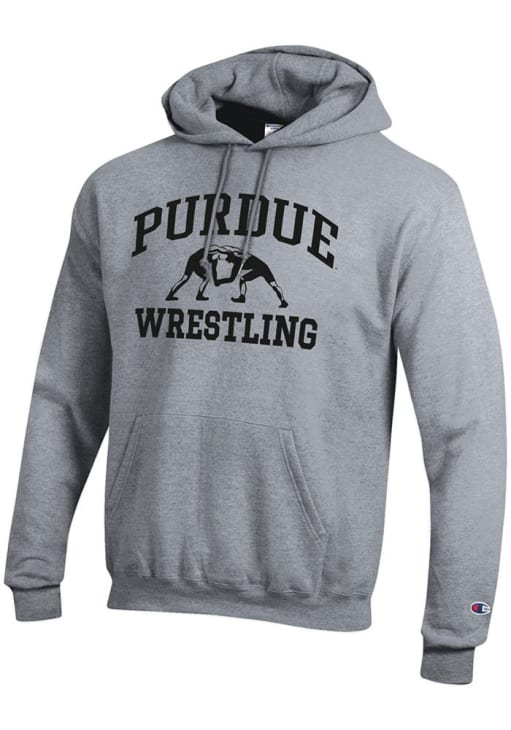 Mens Purdue Boilermakers Grey Champion Wrestling Powerblend Hooded Sweatshirt