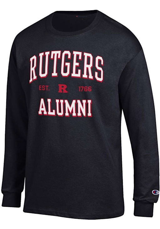 Show your Rutgers Scarlet Knights spirit in this Rutgers Black T Shirt! This Rutgers Est Date Alumni Jersey Long Sleeve T Shirt makes a great layer for cooler nights cheering on the Scarlet Knights. Featuring a screen print team graphic on front chest, this Rutgers Scarlet Knights Long Sleeve Tee is an essential addition for every fan. Go Knights!