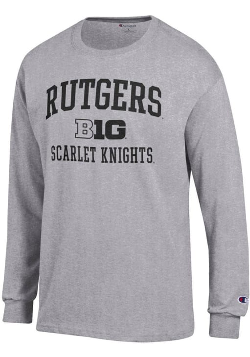 Show your Rutgers Scarlet Knights spirit in this Rutgers Grey T Shirt! This Rutgers Big Ten Jersey Long Sleeve T Shirt makes a great layer for cooler nights cheering on the Scarlet Knights. Featuring a printed team graphic on front chest, this Rutgers Scarlet Knights Long Sleeve Tee is an essential addition for every fan. Go Knights!