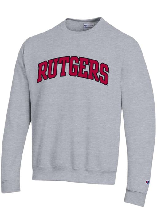 Mens Rutgers Scarlet Knights Grey Champion Arch Name Twill Crew Sweatshirt