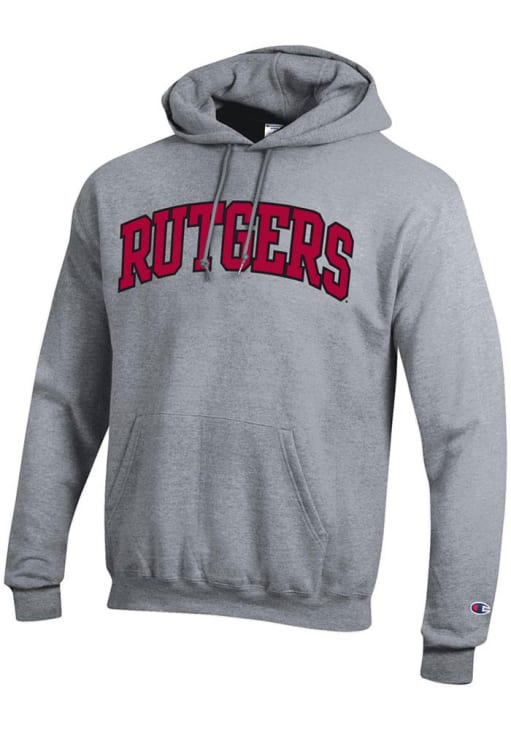 Mens Rutgers Scarlet Knights Grey Champion Arch Name Twill Hooded Sweatshirt