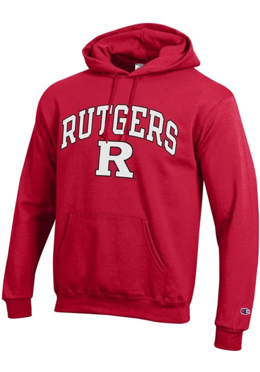 Mens Rutgers Scarlet Knights Red Champion Arch Mascot Hooded Sweatshirt