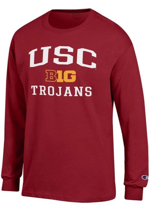 Show your USC Trojans spirit in this USC Red T Shirt! This USC Big Ten Jersey Long Sleeve T Shirt makes a great layer for cooler nights cheering on the Trojans. Featuring a printed team graphic on front chest, this USC Trojans Long Sleeve Tee is an essential addition for every fan. Fight On, Trojan!