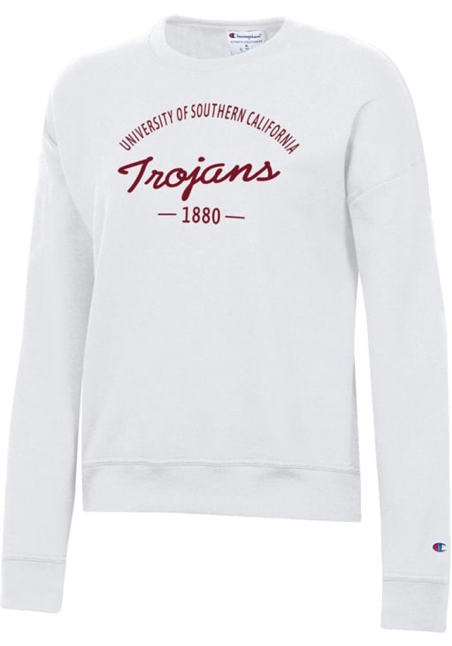 Gear up for the ultimate game day experience with this remarkable USC TrojansWomens White Powerblend Crew Sweatshirt! Designed with the true fan in mind, this Trojans Long Sleeve Sweatshirt features a printed team graphic. Stay warm and comfortable with this Womens USC Trojans Crew Sweatshirt.