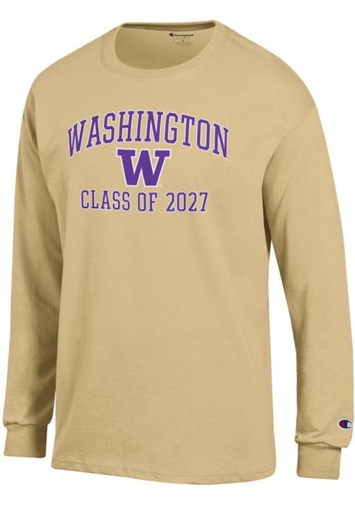 Show your Washington Huskies spirit in this Washington Gold T Shirt! This Washington Font Class of 2027 Jersey Long Sleeve T Shirt makes a great layer for cooler nights cheering on the Huskies. Featuring a printed team graphic on front chest, this Washington Huskies Long Sleeve Tee is an essential addition for every fan. Bow Down to Washington!