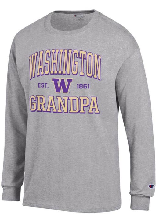 Show your Washington Huskies spirit in this Washington Grey T Shirt! This Washington Est. Date Grandpa Jersey Long Sleeve T Shirt makes a great layer for cooler nights cheering on the Huskies. Featuring a printed team graphic on front chest, this Washington Huskies Long Sleeve Tee is an essential addition for every fan. Bow Down to Washington!