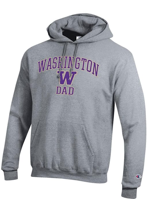 Mens Washington Huskies Grey Champion Arch Logo Dad Powerblend Hooded Sweatshirt