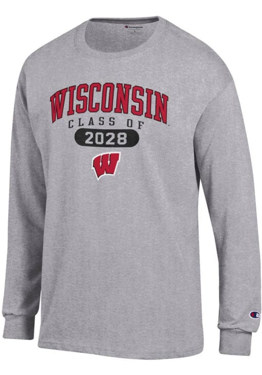 Show your Wisconsin Badgers spirit in this Wisconsin Grey T Shirt! This Wisconsin Class of 2028 Jersey Long Sleeve T Shirt makes a great layer for cooler nights cheering on the Badgers. Featuring a printed team graphic on front chest, this Wisconsin Badgers Long Sleeve Tee is an essential addition for every fan. Go Badgers!