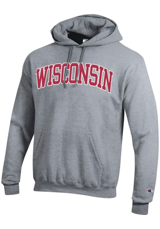 Embrace your Badgers pride and showcase your team spirit with confidence in this Wisconsin Badgers Long Sleeve Hoodie! Stay warm and stylish with the Wisconsin Mens Grey Arch Name Hooded Sweatshirt. Designed with tackle twill embroidery of team name across front chest, this Badgers Long Sleeve Hoodie is a must-have for dedicated fans.