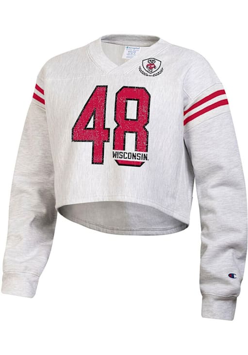 Gear up for the ultimate game day experience with this remarkable Wisconsin BadgersWomens Grey Reverse Weave Jersey Crew Sweatshirt! Designed with the true fan in mind, this Badgers Long Sleeve Sweatshirt features a screenprint team graphic on center chest. Stay warm and comfortable with this Womens Wisconsin Badgers Crew Sweatshirt.
