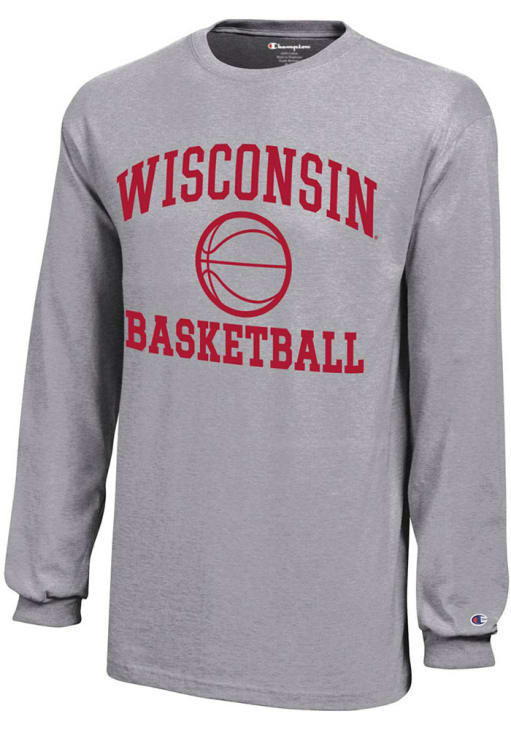Size Chart for Youth Wisconsin Badgers Grey Champion Basketball Core Long Sleeve T-Shirt
