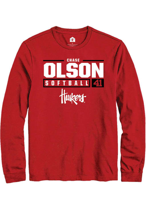 Chase Olson Rally Mens Red Nebraska Cornhuskers NIL Stacked Box Tee