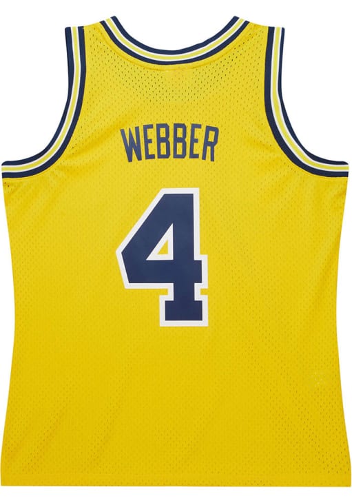 Stand out and showcase your unwavering Michigan pride with confidence in this striking Michigan Wolverines Mens Yellow No4 Webber Basketball Jersey! Make a statement on gameday with this eye-catching Michigan Wolverines Basketball Jersey, which features a player number on front chest with name and number on back.