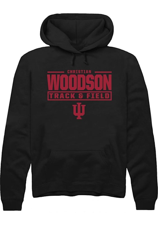 Christian Woodson Rally Mens Black Indiana Hoosiers NIL Stacked Box Hooded Sweatshirt