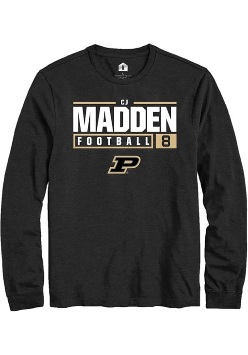Cj Madden Rally Mens Black Purdue Boilermakers NIL Stacked Box Tee