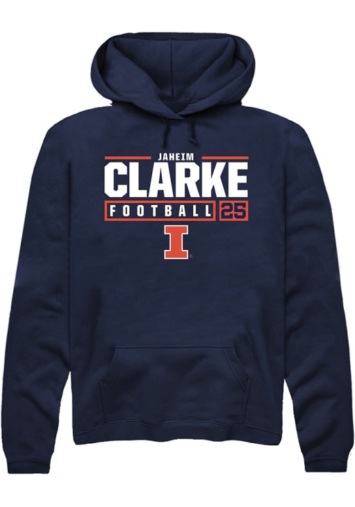 Jaheim Clarke Rally Mens Navy Blue Illinois Fighting Illini NIL Stacked Box Hooded Sweatshirt